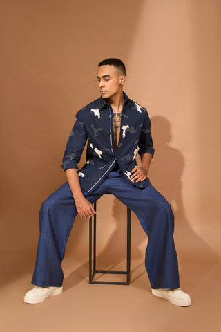 Long sleeve shirt with kalamkari star embroidery with jersey sleeve